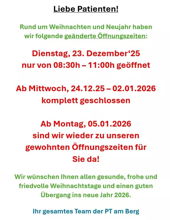 geänderte Öffnungszeiten Weihnachten 2025